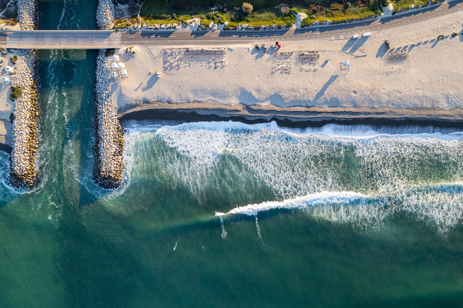 Aerial perspective of Ponto Beach in Carlsbad. San Diego, California