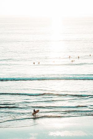 Longboarder awaiting to paddle out. San Diego, CA